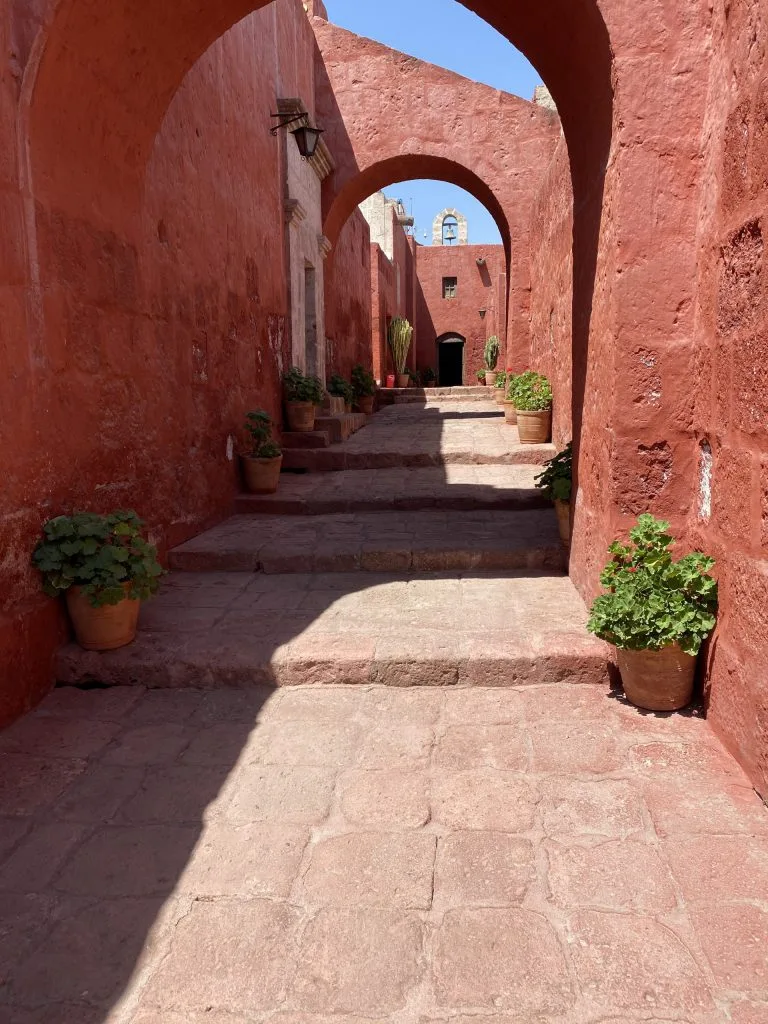 One of the most beautiful places we visited in Arequipa, was the Santa Catalina Monastery. Built in the late 1500’s, and also suffering damage over the centuries due to the many earthquakes, it has been rebuilt and restored to it’s current beautiful state. It was not allowed any visitors up until 1970. Before that it was, only the nuns that lived there, which at one point had more than 400 living there which included the nuns and their servants. The only visitors allowed were catholic priests. This village was so big, it took us several hours to walk it all. Again built with the volcanic rocks, and painted bright red and blue, it was breathtaking.