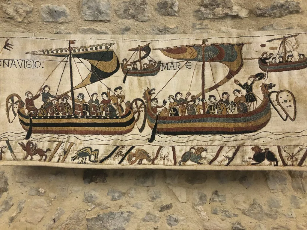The tapestry is a thousand years old, 70 yards in length and depicts the duke of Normandy’s William the conquerors victory over King Harold of England making William the new king of England in 1066. It was an amazing site one single piece of linen with the story stitched out in 57 scenes across the fabric.