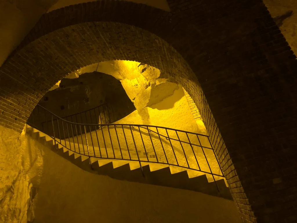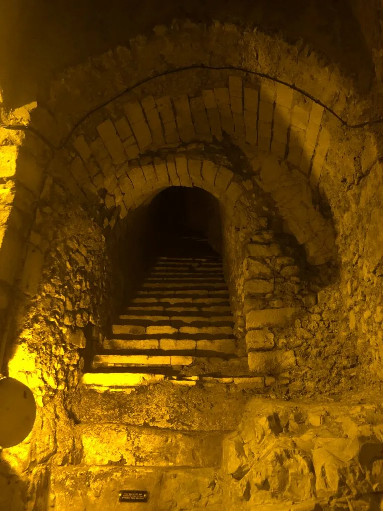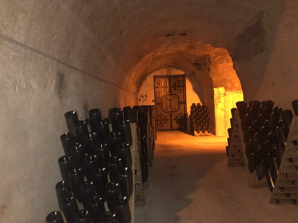After we ate it was time for our cave tour. We learned the history abboit how the grape used for the chapmpagne in their whole region was brought over in the 1400’s and monks at the abbey began making it and storing them while they fermented in the chalk caves underneath the city. That process is still being used today and Tattinger has the largest caves in the region. The also have hundreds of acres of grapes growing outside the city. The caves were six stories underground and have eight miles of passages. Theses were the original ones from the abbey that the monks used 600 years ago. They also store several millions of bottles at a time and they stay down there to ferment from 3-10 years dependent on the type. It was fascinating and chilly but amazing to see.