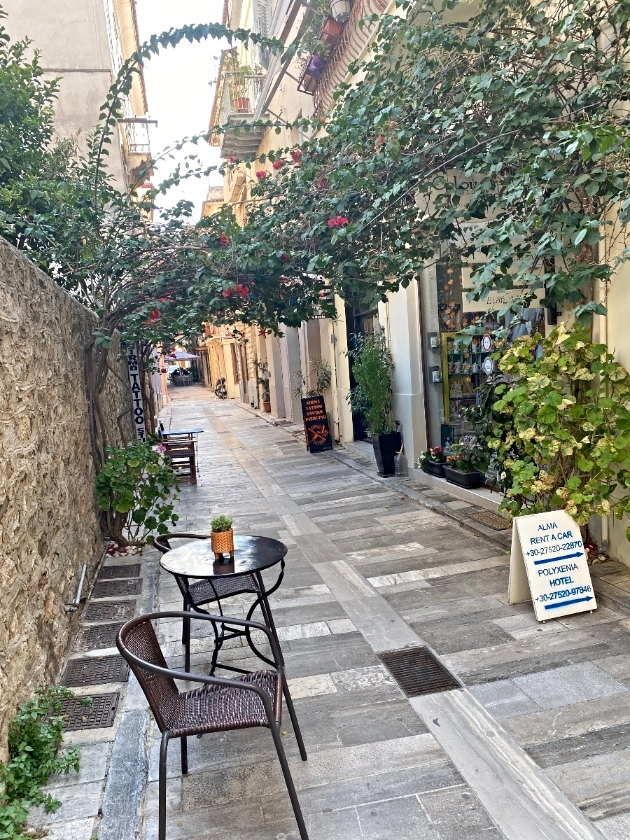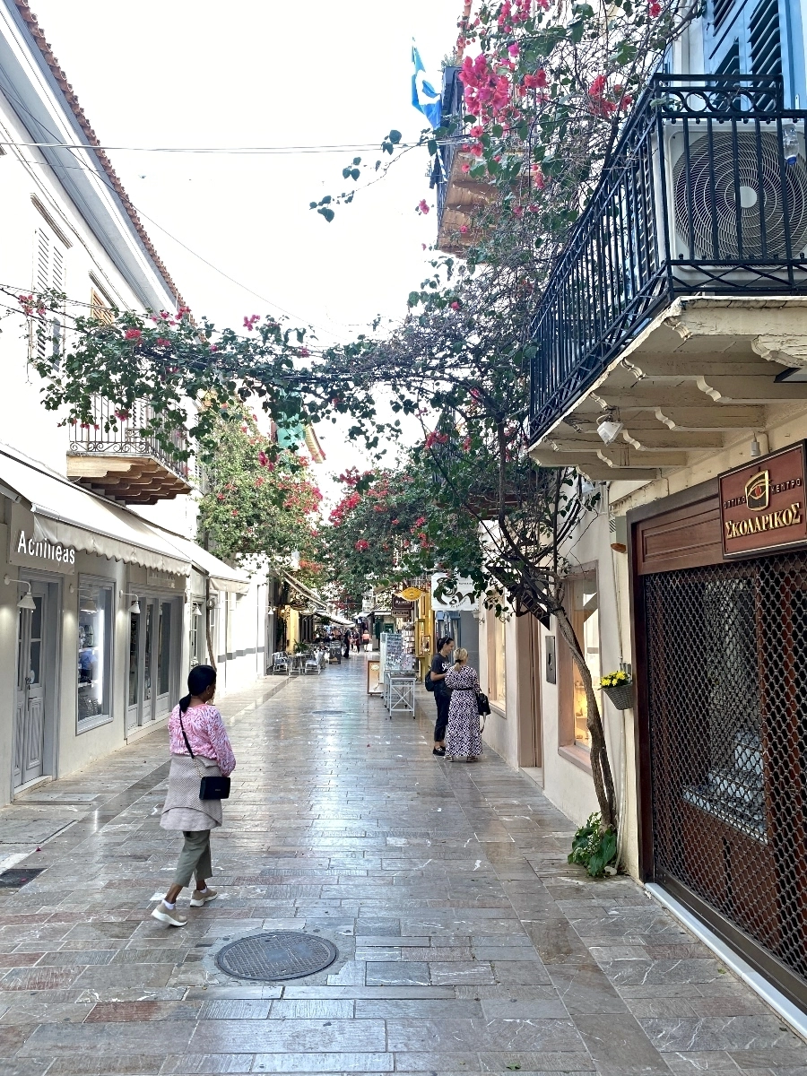 Today we flew from Mykonos back to Athens, and Auntie Rima continued traveling back home, while we had a shuttle pick us up and drive us about 2 hours west of Athens, to Nafplio – a coastal city located in the Peloponnese part of Greece.