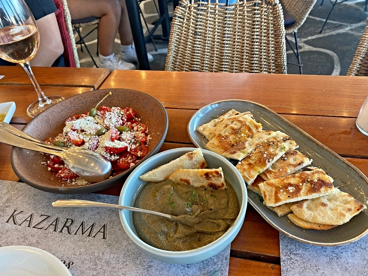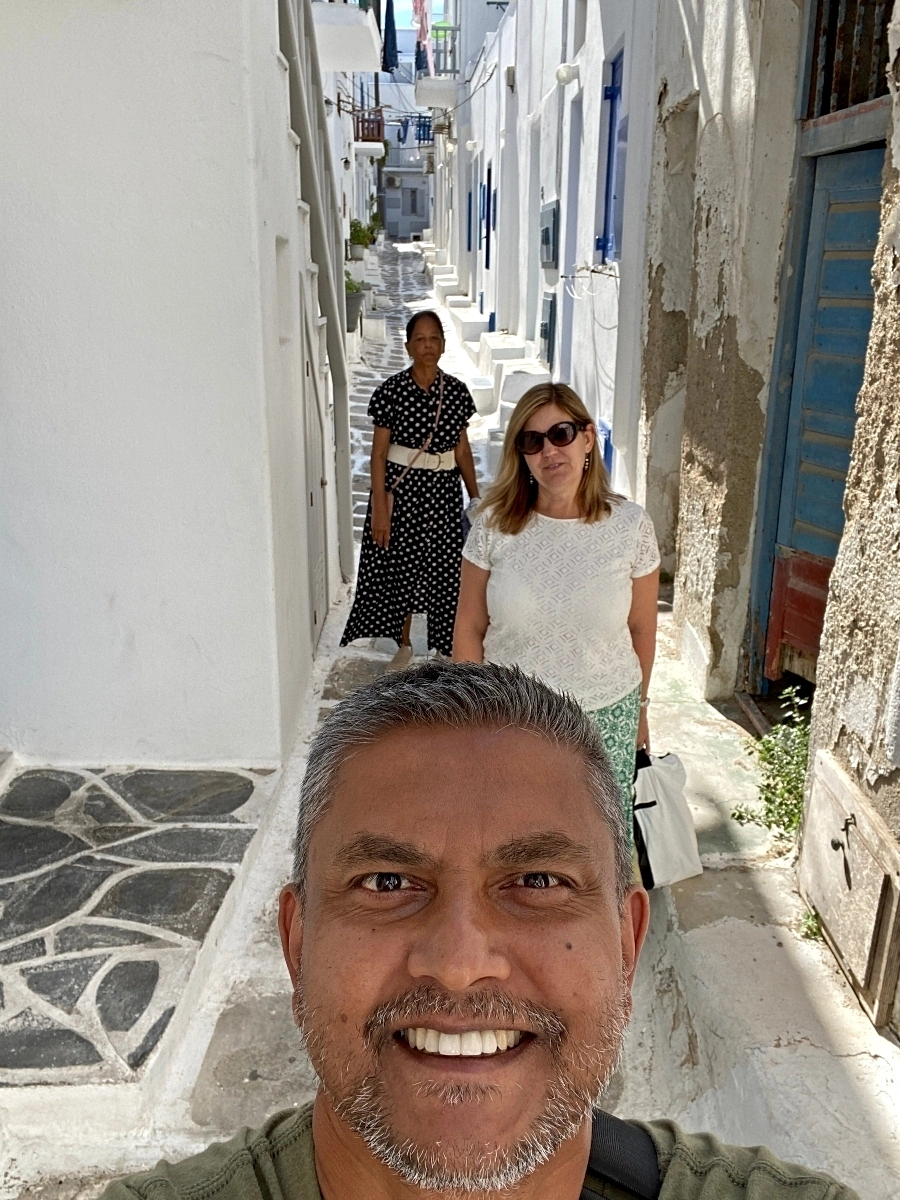 Once we got to Mykonos, we had to get off the ferry boat, again along with 700 people, with all our personal belongings. We then took a water taxi, to the old port. Once we got there, we then had to walk and find our Air BnB. Which wasn’t easy, with all suitcases, the cobblestone streets and no sense of direction. Eventually we found our place and got settled in.