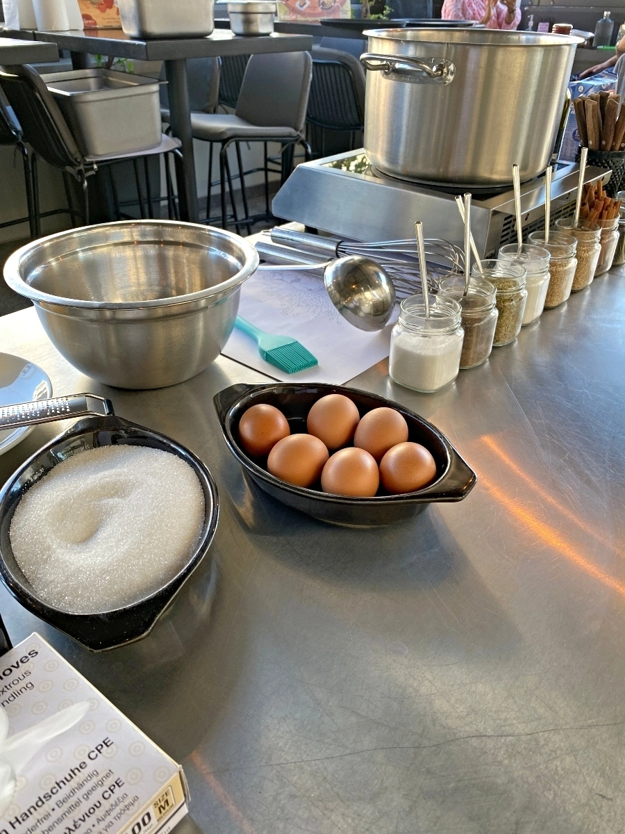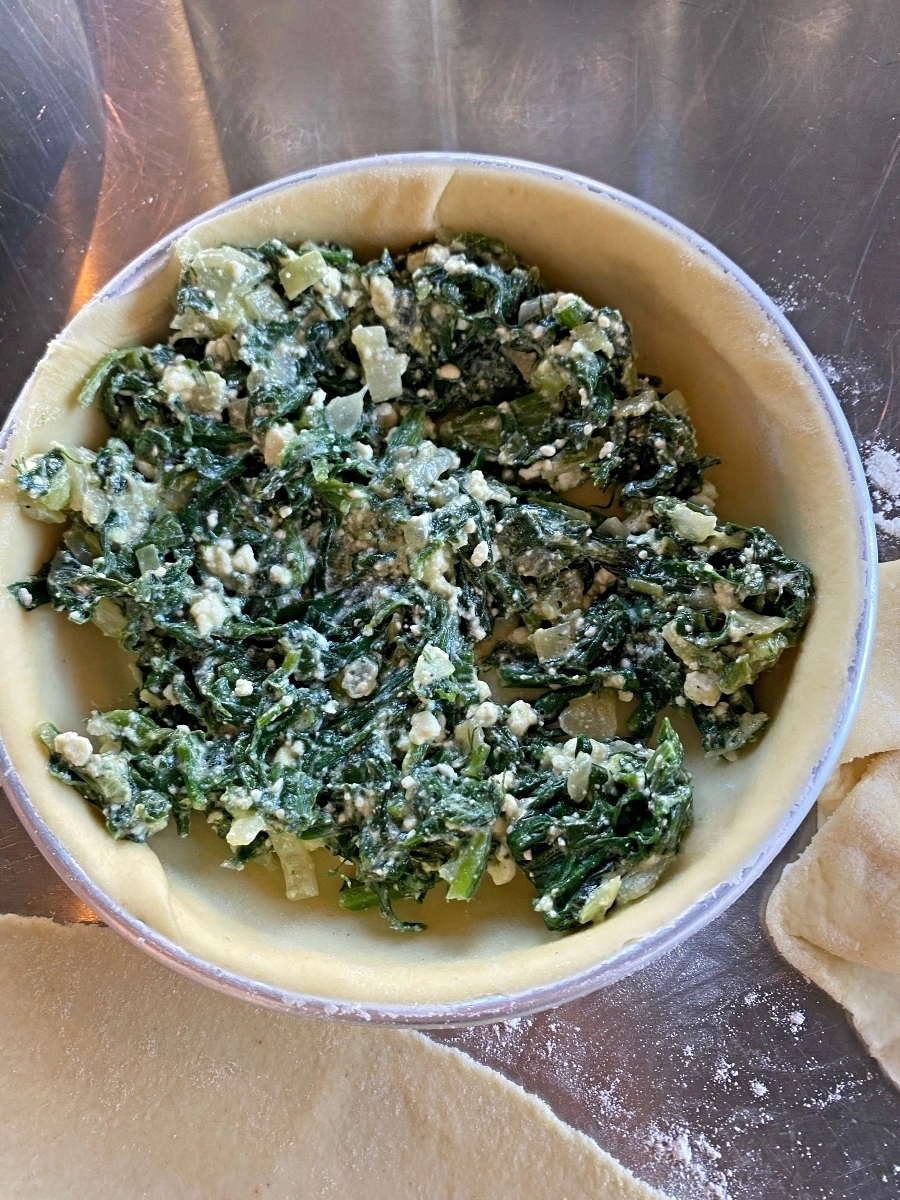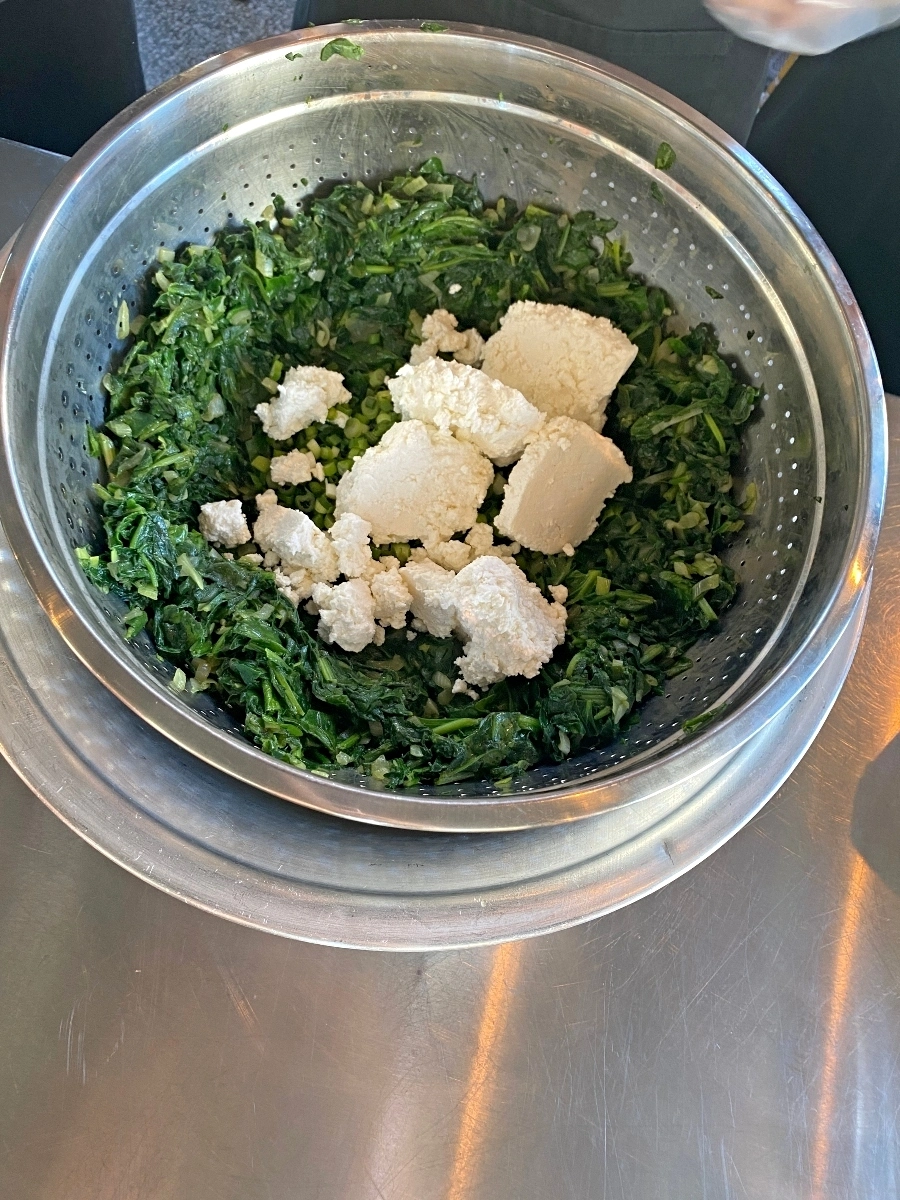 Our menu was – Spanokopita, Moussaka, Tzatziki, Farmer’s Salad and a citrus custard dessert. We learned a lot about Greek cuisine, what makes Feta FETA and how to make phyllo dough. It was super informative and we all had a lot of fun learning new techniques.