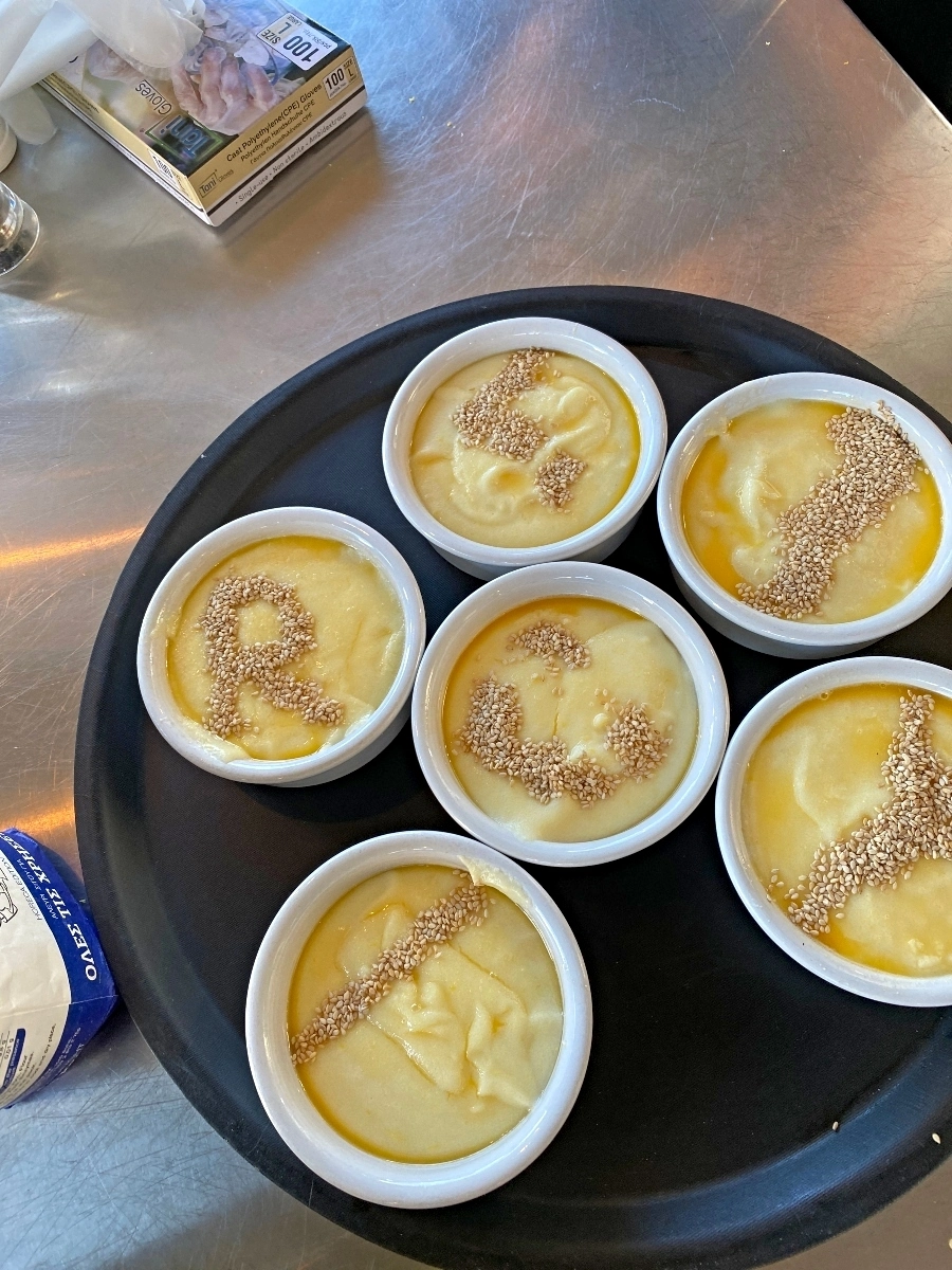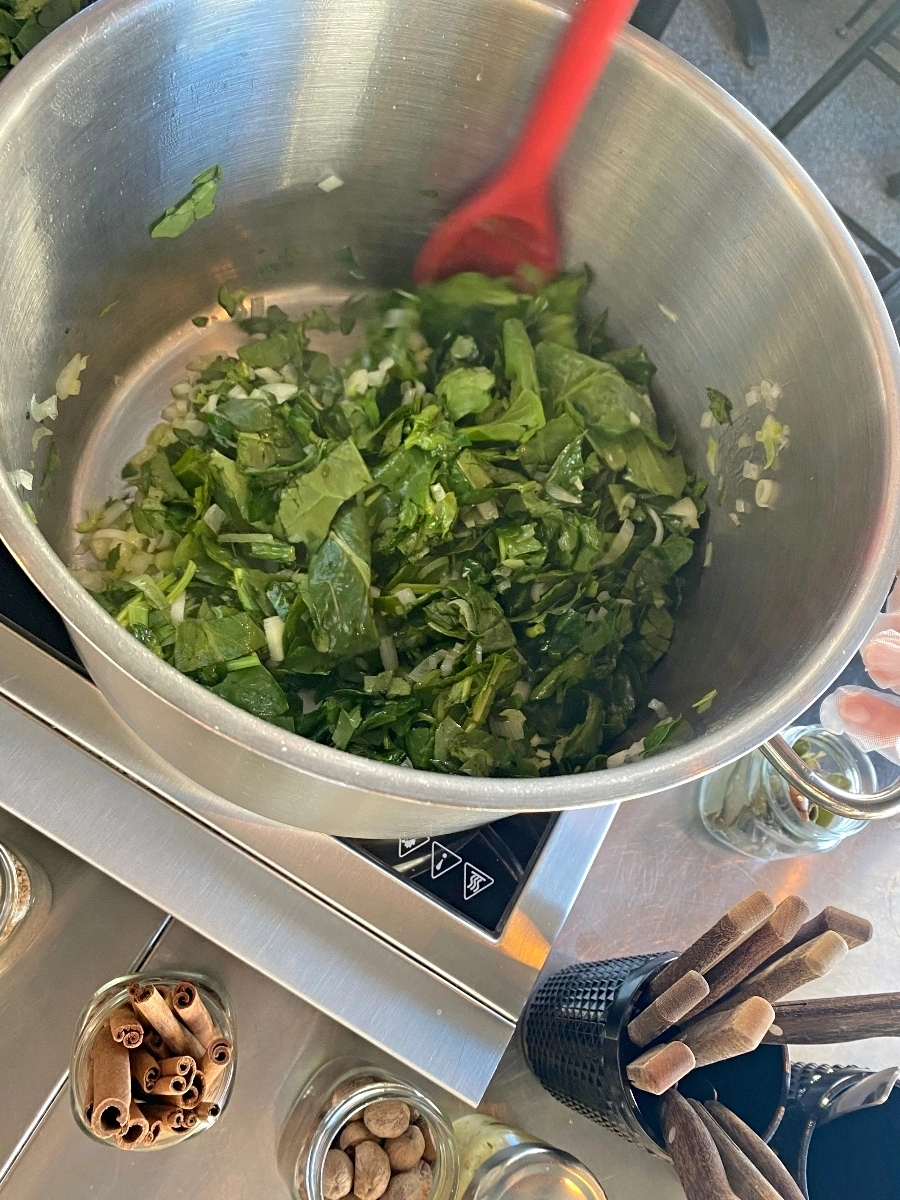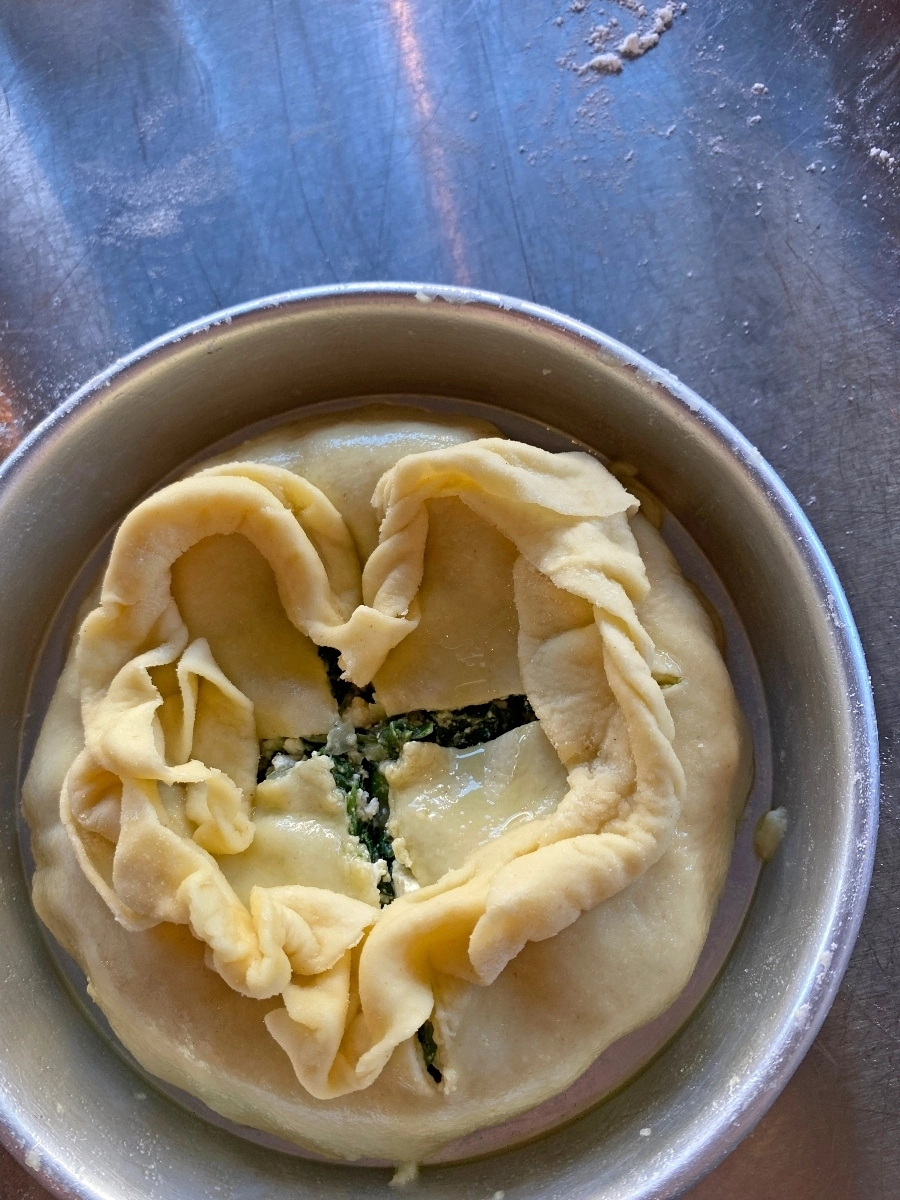 Our menu was – Spanokopita, Moussaka, Tzatziki, Farmer’s Salad and a citrus custard dessert. We learned a lot about Greek cuisine, what makes Feta FETA and how to make phyllo dough. It was super informative and we all had a lot of fun learning new techniques.