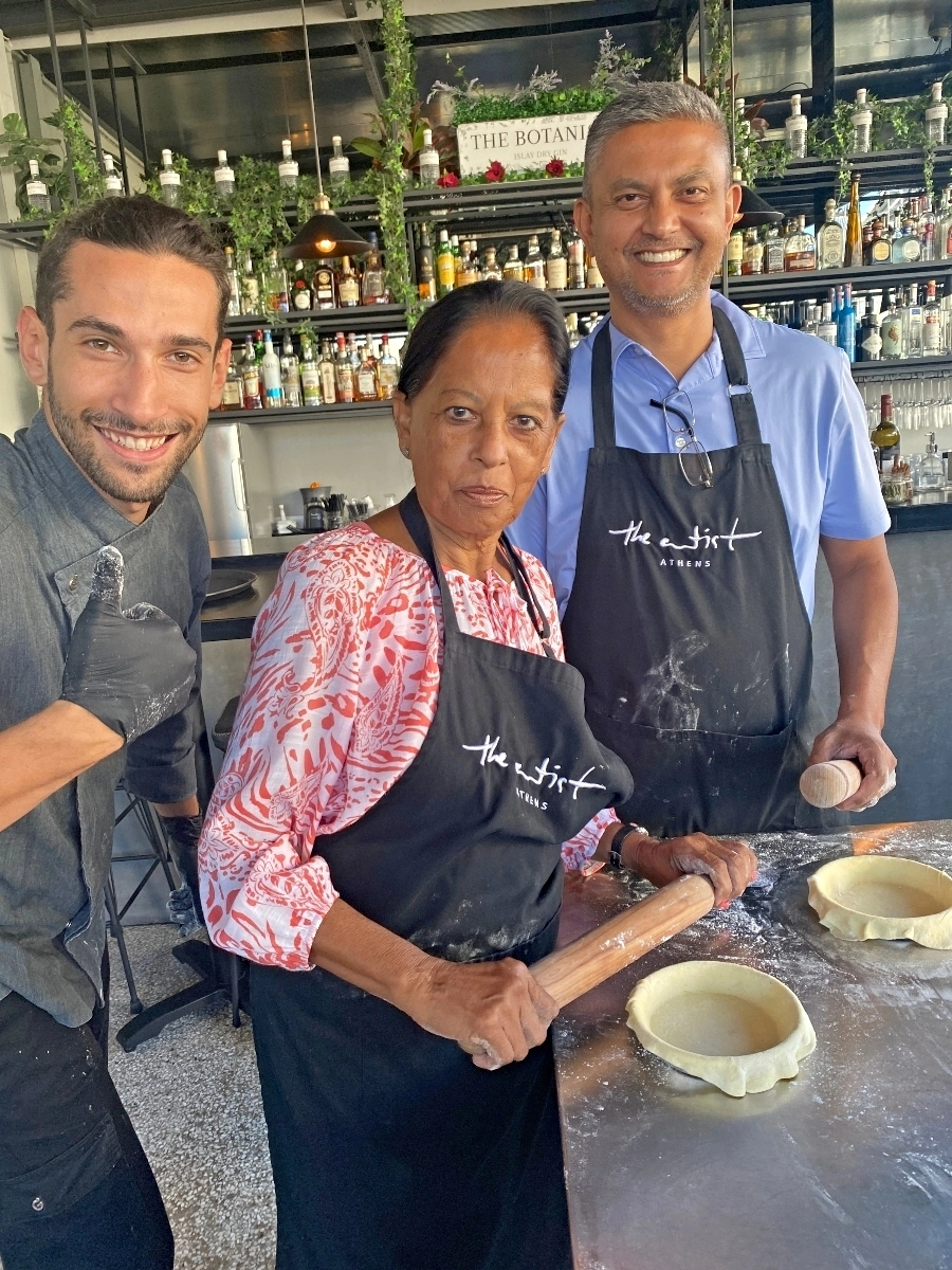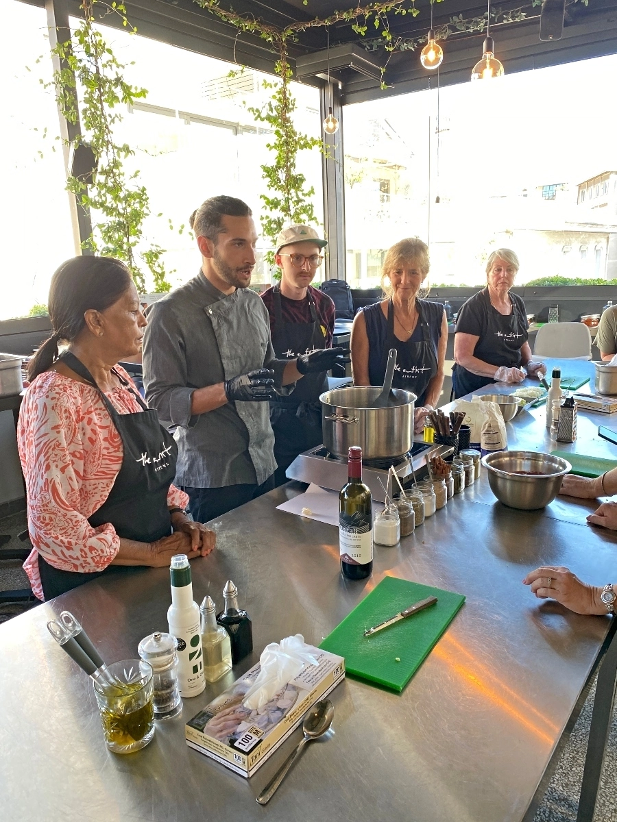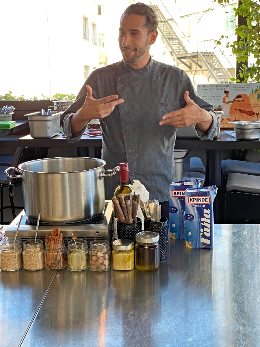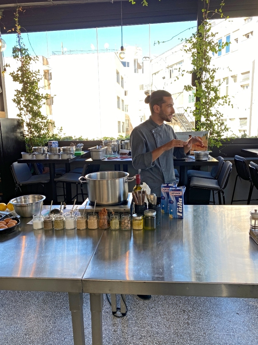 Our last night in Athens we took a cooking class which took place at a roof top restaurant close to our hotel. Our group was us, two couples from the US and a mother and her three daughters from South Africa. Our instructor was a young Greek chef named Stam.