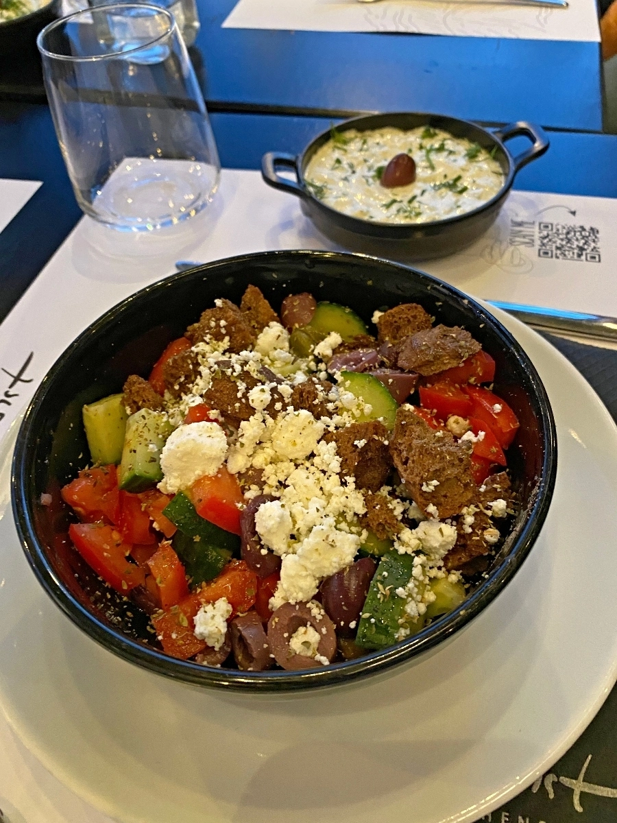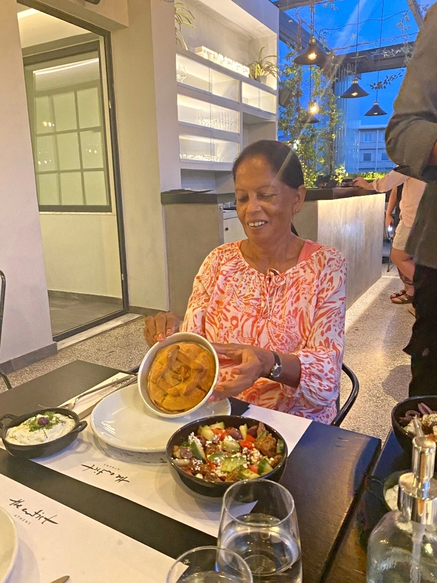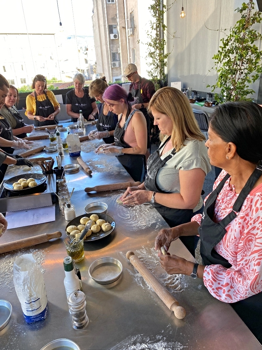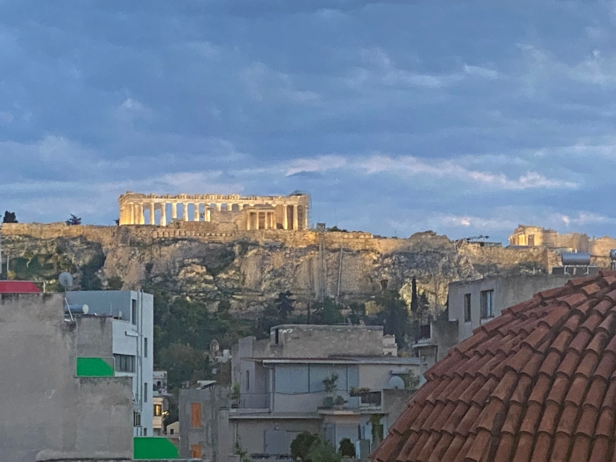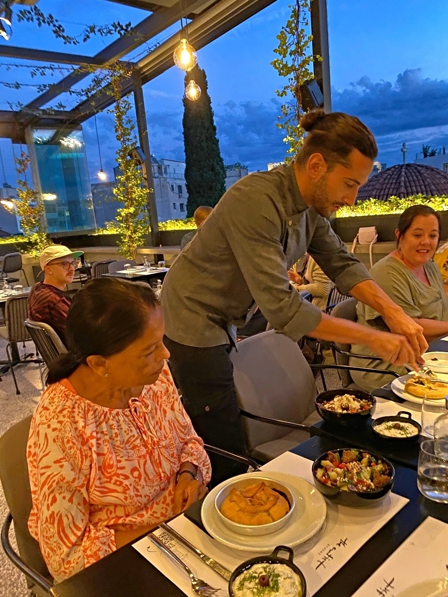 When we finished our class, we went to the restaurant next door and enjoyed our creations. We ate together as a group, made new friends and watched the our final Athenian sunset with the Acropolis in the background.