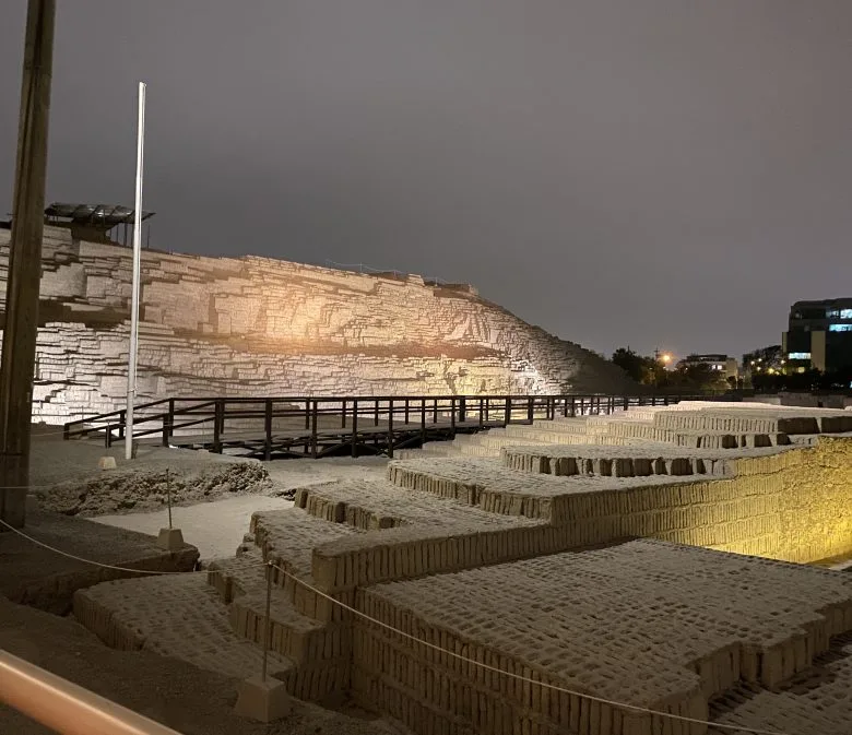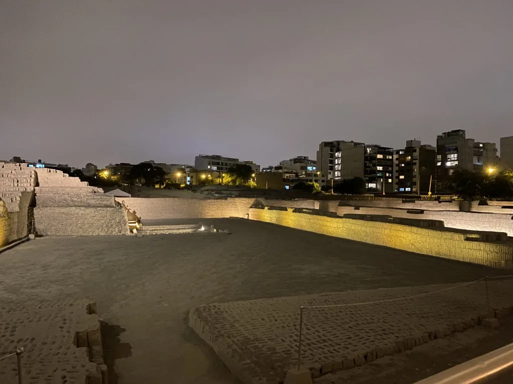After our tour we enjoyed our first authentic Peruvian dinner at the Huaca Pucclana pyramid. We invited Kim who was on the tour with us to join us. It was so nice to make a new friend and enjoy a fantastic meal overlooking this amazing site. Located in the middle of the city, it’s built with clay blocks between 200-700 AD. It was an amazing view, with delicious food and lovely company.