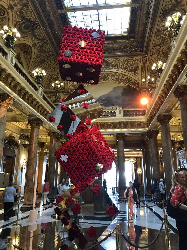 Once we got there, we went forts to the world famous Monte Carlo Casino. Since there’s a big tennis tournament going on in the city, it had lots of tennis decorations out front. We were able to go into the Main lobby and see the beautiful marble columns and stained glass. They also had a beautiful centerpiece with the biggest red roses I’ve ever seen.