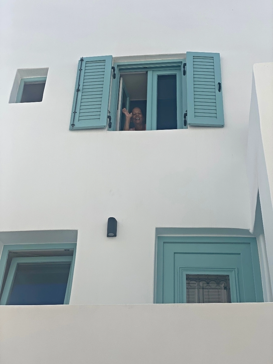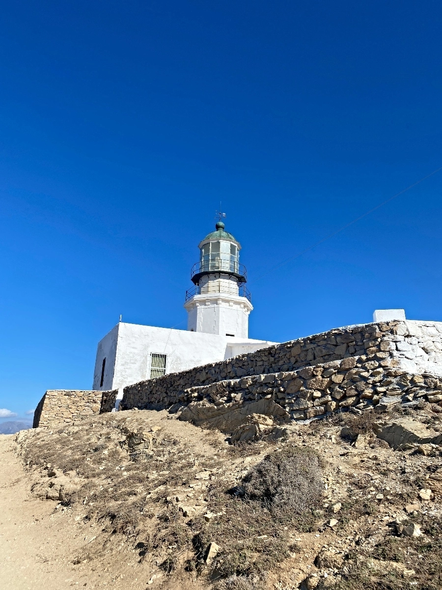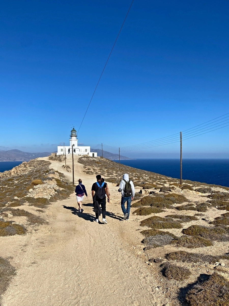 Today we got had an island excursion. We got picked up by Marius, our guide for the day. Our first stop was Armenistis Lighthouse – an iconic sight of the island! It was built in 1891 as a tribute to the rich maritime history. It was very windy up top, but the view was spectacular of the neighboring islands