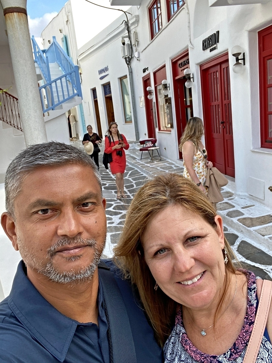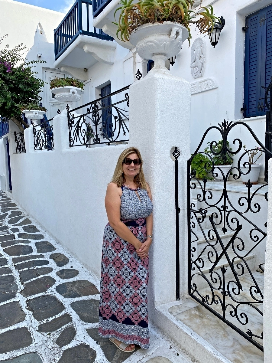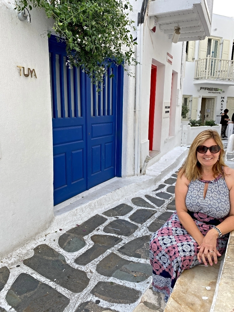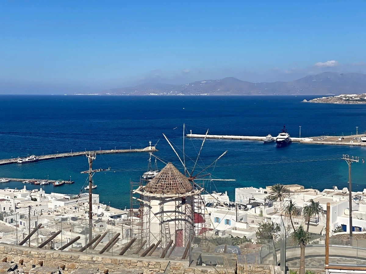 Today we got had an island excursion. We got picked up by Marius, our guide for the day. Our first stop was Armenistis Lighthouse – an iconic sight of the island! It was built in 1891 as a tribute to the rich maritime history. It was very windy up top, but the view was spectacular of the neighboring islands