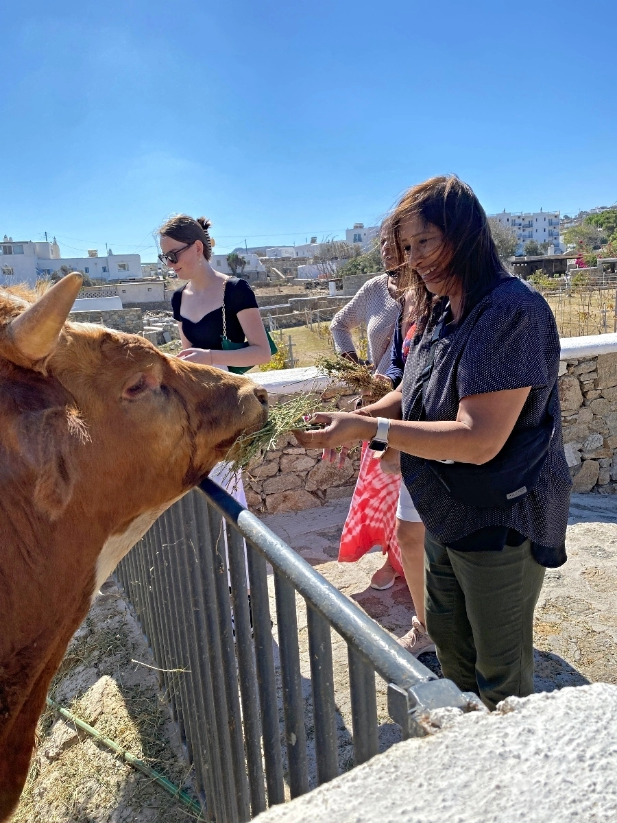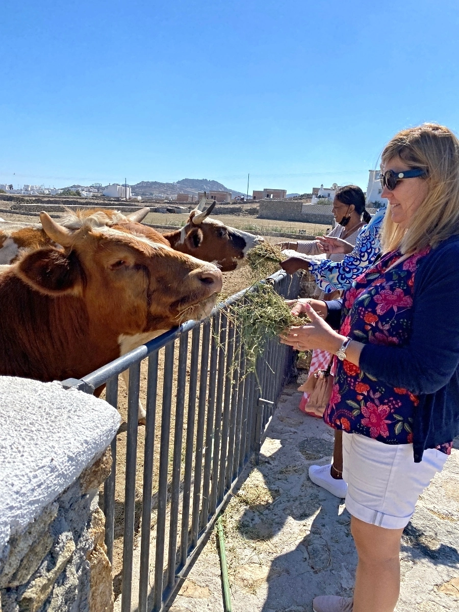Our final stop was to a Mykonian Family Farm. We got to feed the cows and goats, and enjoyed lunch with our fellow travelers.