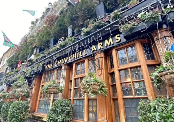 Lauren was our food & pub finder, and she did a fantastic job finding places. Our lunch spot was Mr. Toad’s Pub which was decorated for the holidays and had special holiday menu featuring mulled wine, our new favorite drink. Elsie was fascinated with the old-fashioned restrooms.